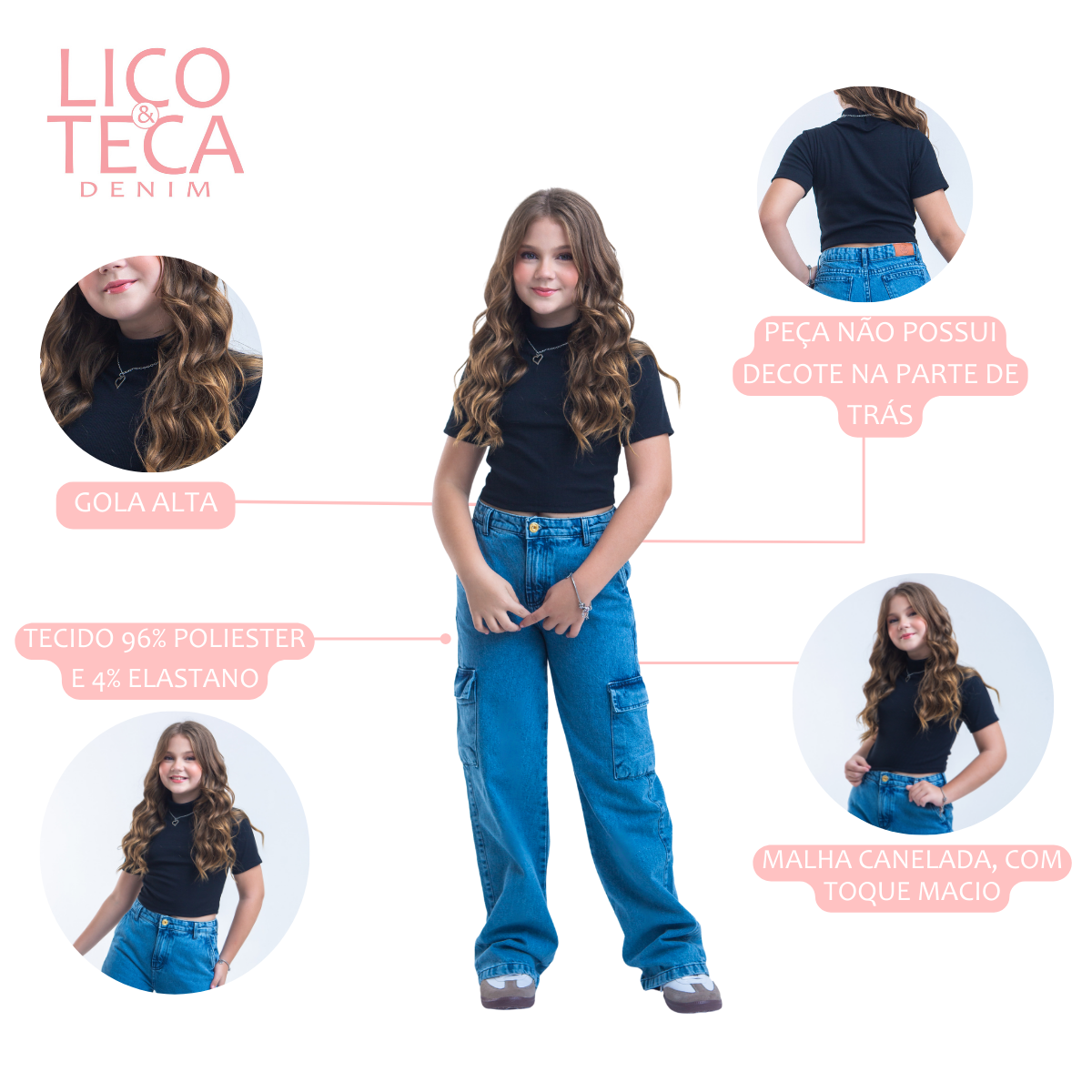 Possui gola alta e mangas, trazendo um visual moderno e versátil, ideal para compor looks estilosos em diferentes ocasiões. Uma peça confortável e prática, perfeita para acompanhar crianças e adolescentes com muito charme.