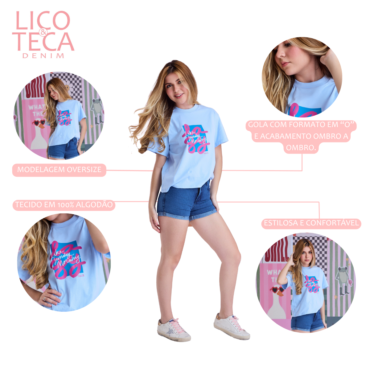 Pensada para crianças, a T-SHIRT LIKE SUNDAY está disponível do tamanho 6 ao 14, garantindo um caimento confortável e adequado para cada fase.