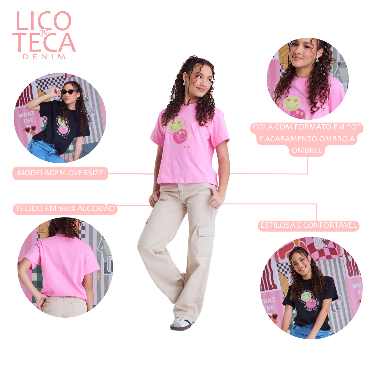 Disponível nas cores azul, rosa e preto, essa camiseta combina facilmente com diferentes looks, do casual ao despojado. Seu design pensado para trazer leveza e alegria, faz dela uma peça versátil, ideal para crianças e adolescentes.