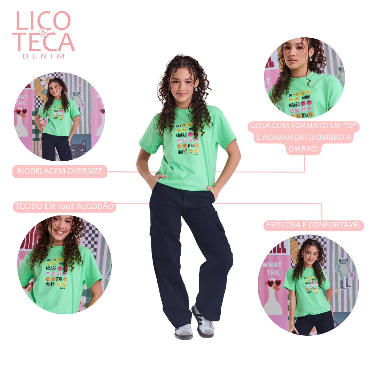A T-shirt What Makes You Happy é a escolha perfeita para quem busca conforto e estilo em uma peça versátil. Confeccionada em 100% algodão, oferece toque macio e excelente respirabilidade, ideal para o uso diário das crianças.