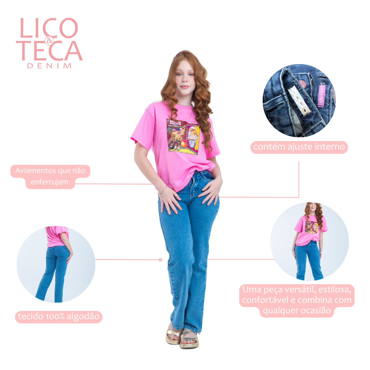 A Calça Stella possui modelagem wide leg, confeccionada em tecido 100% algodão, disponivel do tamanho 10 ao 16 anos, possui ajuste interno no cós em todos os tamanhos proporcionando conforto e liberdade de movimentos. No lavado marmorizado e com aviamentos em zamac que trazem um acabamento superior à peça. É uma peça funcional e versátil, ideal para o público juvenil.